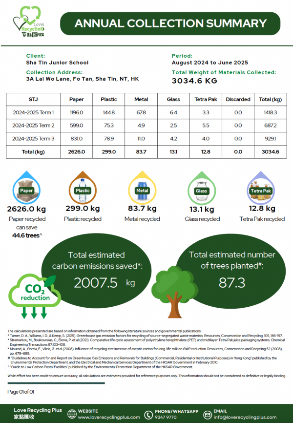 RECYCLING - ANNUAL COLLECTION SUMMARY